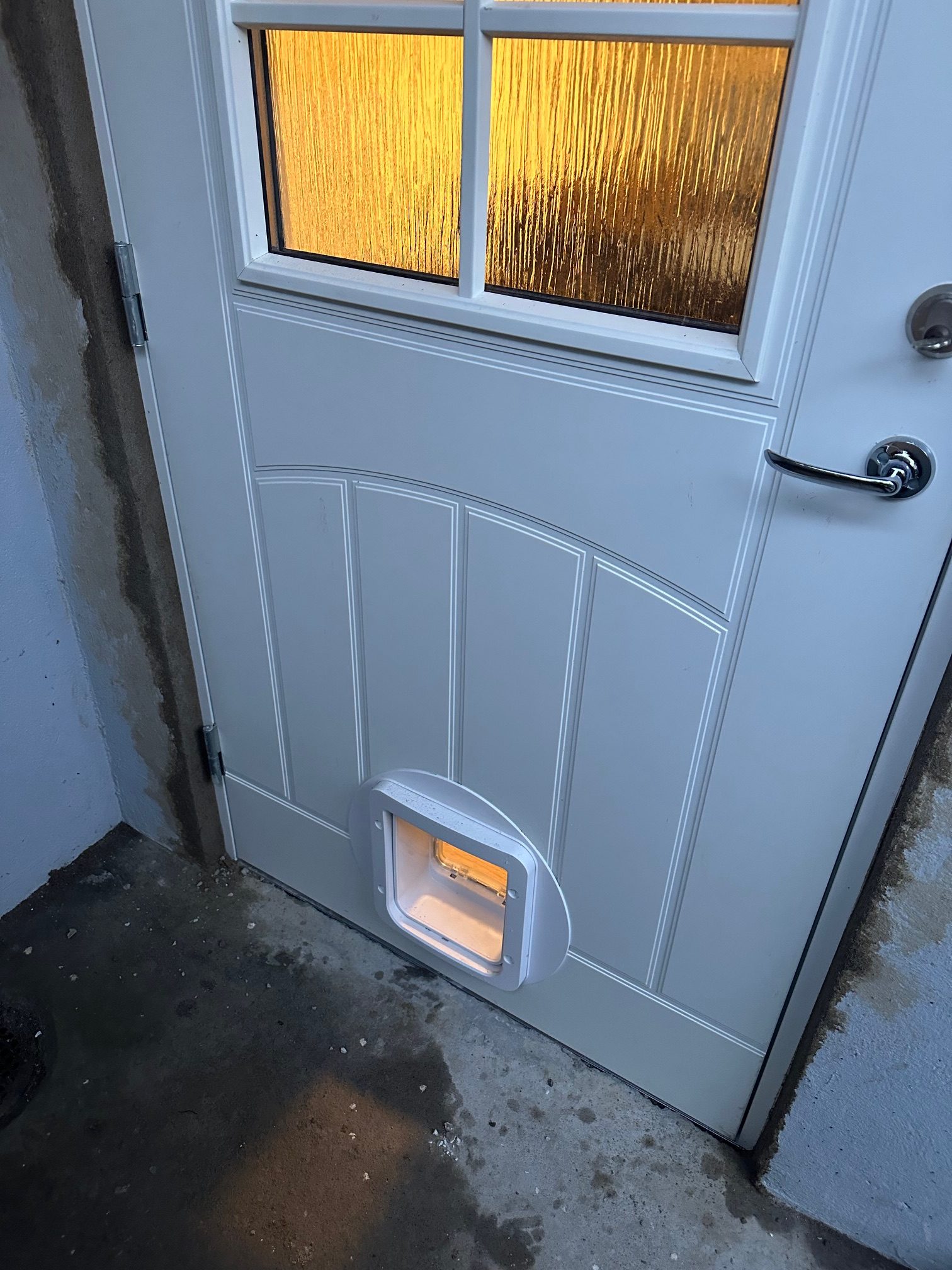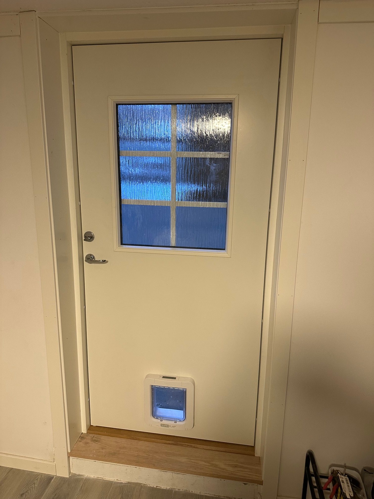 Källardörr med kattlucka för chippade katter. Samt en toadörr.